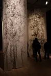 Al je zintuigen worden aangesproken om het lichaam en de geest tot rust te brengen, en dat mag je gerust letterlijk nemen. In de eerste zaal kom je in aanraking met het best imposante werk van Nicola Turner dat bestaat uit, jawel, paardenhaar en schapenwol, met de bijbehorende geuren. Trekt het je aan of stoot het je af? Dat is waar het hier om draait: hoe staan we in relatie met dode materie waar we tenslotte ook zelf uit bestaan?