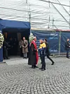Op de Grote Markt zijn er langs de Sint-Pieterskerk opvallend weinig aanwezigen. Zo valt op dat er verschillende lege plekken zijn achter de hekken.