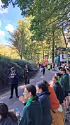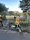 Na aankomst bij de hekken werd een loopster van Politika onwel. Ze viel flauw vlak voor het standje. Iemand van Apolloon nam haar stok over.