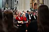 Met een kwartier vertraging gaat de eucharistieviering in de Sint-Pieterskerk van start. De professoren kwamen in groepjes aan, omdat ze eerder werden opgehouden in de Naamsestraat. Dorien Emmers, professor in de Chinese studies, had bij aankomst een stukje watermeloen vast: een verwijzing naar de Palestijnse vlag.